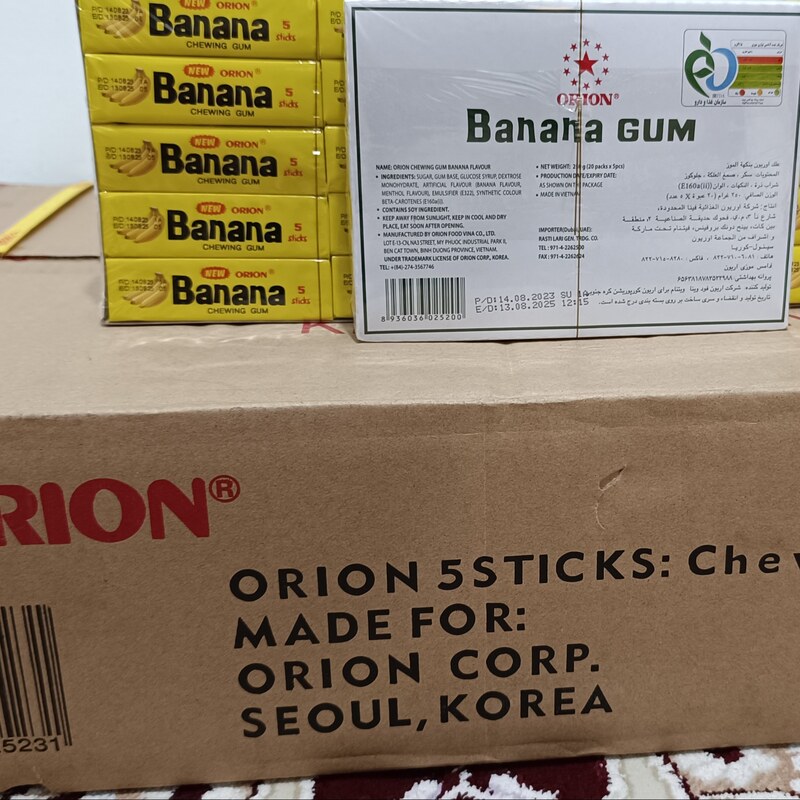 آدامس موزی اصل اوریون کره ۲۰ عددی ۲۵۰ گرمی